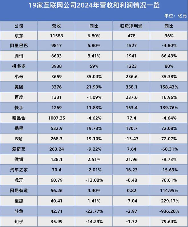 2024年国内19家互联网公司营收和利润表现广告收入整体呈现增长态势!